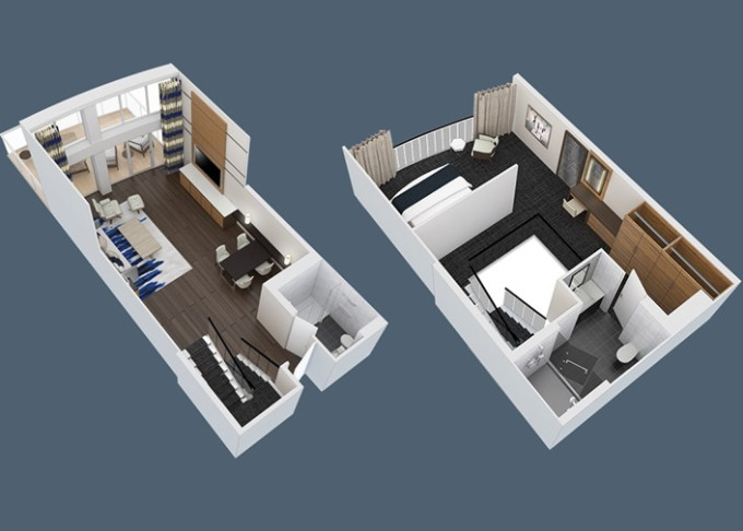 | GL - Grand Loft Suite s balkonem 65 m² / balkon 20 m². Výhody Royal Suite Class. 2-podlažní apartmán. 15. paluba. Max 4 osoby. | 257 787 Kč 64 447 Kč za osobu |