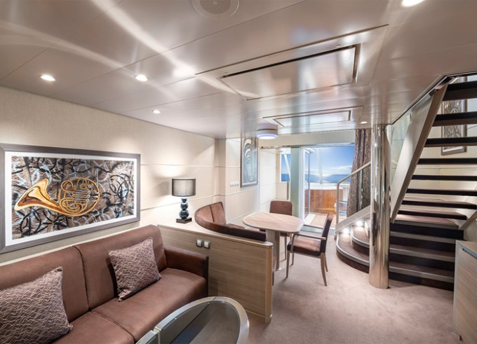 | YJD - Yacht Club Duplex Suite s vířivkou 59 m² + balkon 23 m². Vířivka. 2 podlaží, 2 šatníky, 2 koupelny (1 s vanou). 9. až 12. paluba. Cenový model MSC Yacht Club. | 179 310 Kč 179 310 Kč za osobu |