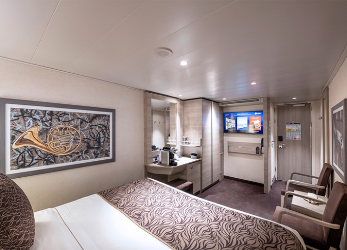 - ubytování v plně vybavené kajutě: vlastní koupelna se sprchou a WC, interaktivní TV, telefon, trezor, vysoušeč vlasů, regulovatelná klimatizace, minibar (za poplatek), Wi-fi (za poplatek)