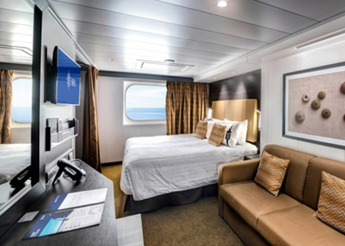 Kajuta oknem: 15 - 25 m², kajuta s manželskou postelí (na požádání 2 oddělené postele) a 1-2 vyklápěcí horní lůžka. Klimatizace, koupelna se sprchou a WC, toaletní stolek, skříň, interaktivní TV, sejf, telefon, vysoušeč vlasů, virtuální asistentka ZOE, neotevíratelné okno. Kajuty v kategorii Bella a některé Junior a Deluxe mají omezený výhled.