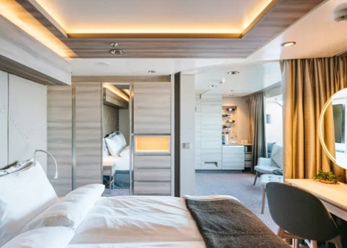| MD - Expedition Large Suite s balkonem 35 m². Balkon. TV, minibar, varná konvice, kávovar, župany. ♿ | 960 938 Kč 480 469 Kč za osobu | ||