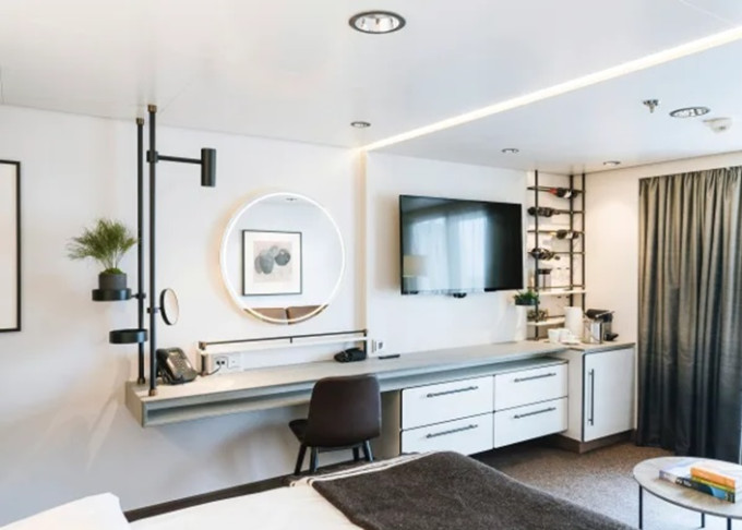 Na lodi jsou hostům k dispozici kajuty s oknem nebo kajuty s balkónem a dále luxusní apartmá s vlastní vířivkou a nádherným výhledem.