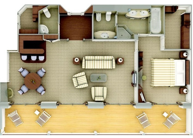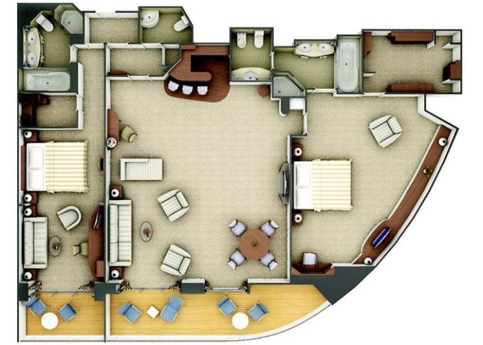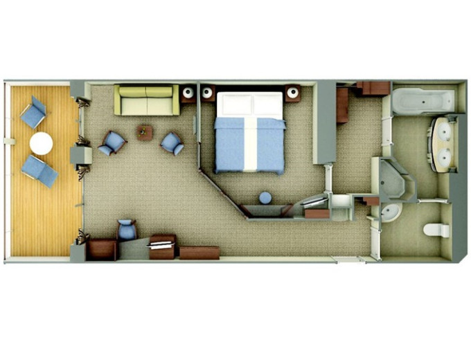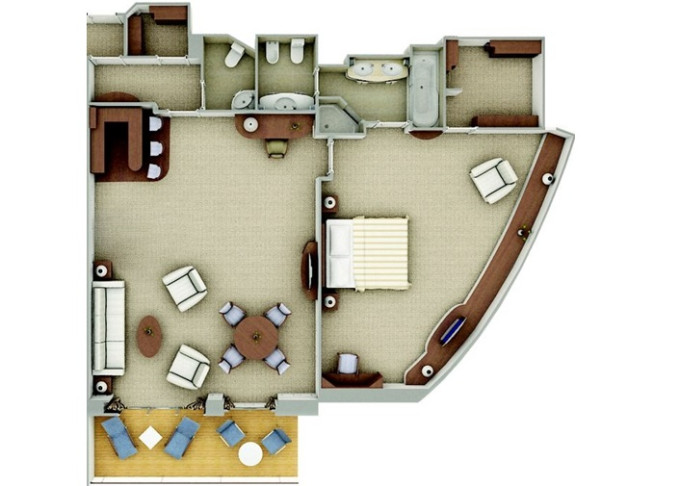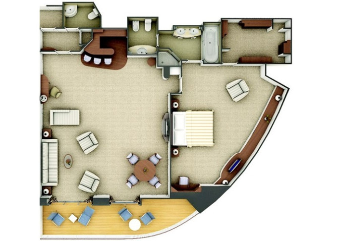| O1 - Owner's Suite 1 85 m² (včetně balkonu). Oddělená obývací časť, jedáleň, ložnice, vírívka. | 1 014 087 Kč 507 043 Kč za osobu | ||