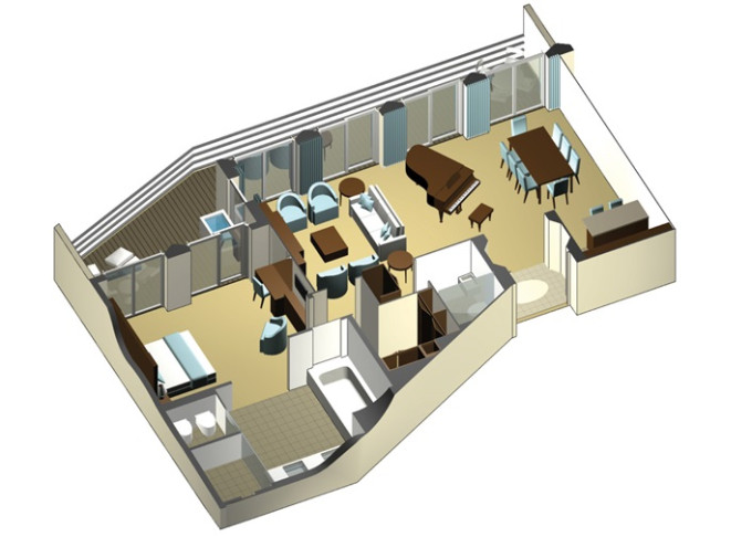 RS - Royal Suite 55 m² + balkon s vířivkou 15 m². 10/11. paluba. Max 4 osoby. Výhody Suite. 629 536 Kč 209 845 Kč za osobu