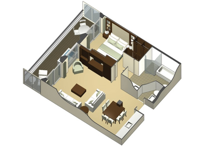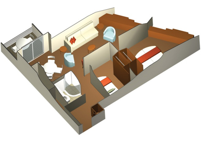S1 - Sky Suite 28 m² + balkon 7 m². 6. až 12. paluba. Max 4 osoby. Výhody Suite. 348 942 Kč 116 314 Kč za osobu