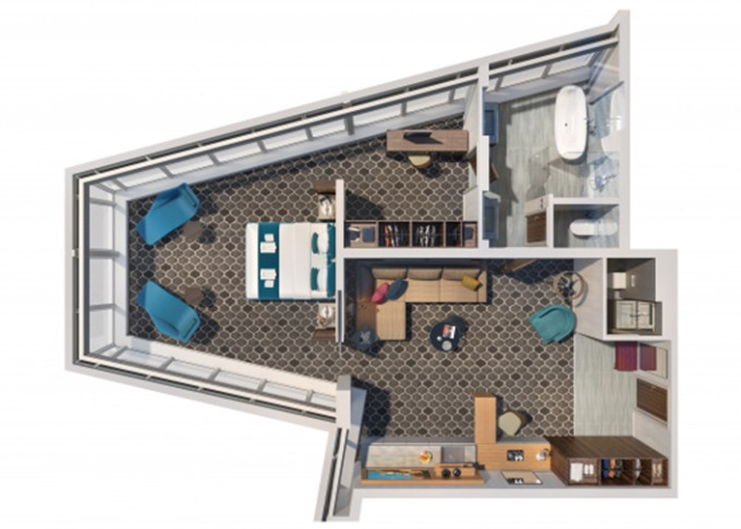 | A1 - Suite AquaTheater Spacious / 2 ložnice 76,5 m² / balkon 67 m². Výhody Royal Suite Class. 8. paluba. Max 8 osob. | 559 421 Kč 559 421 Kč za osobu | ||