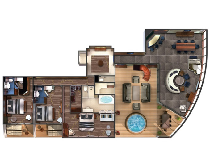 | H4 - The Haven Owners Suite 73 m² / balkon 23 m². Výhody The Haven. 9. plauba vpředu. Max 6 osob | 176 259 Kč 88 130 Kč za osobu |