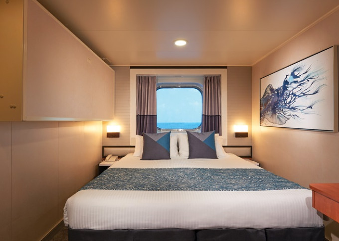 Kajuta s oknem: cca 13 - 15 m²; varianta s omezeným výhledem, s malým oknem, s velkým oknem; okna nelze otevírat.