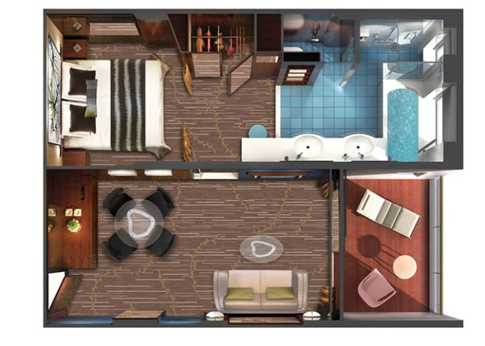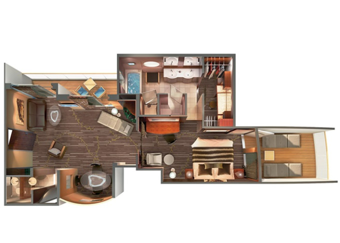 | S4 - Deluxe Family Suite - 2 ložnice 51 m² / balkon 5 m². Výhody Suite. 11. paluba - vpředu, střed. Max 6 osob. | 90 480 Kč 45 240 Kč za osobu | ||