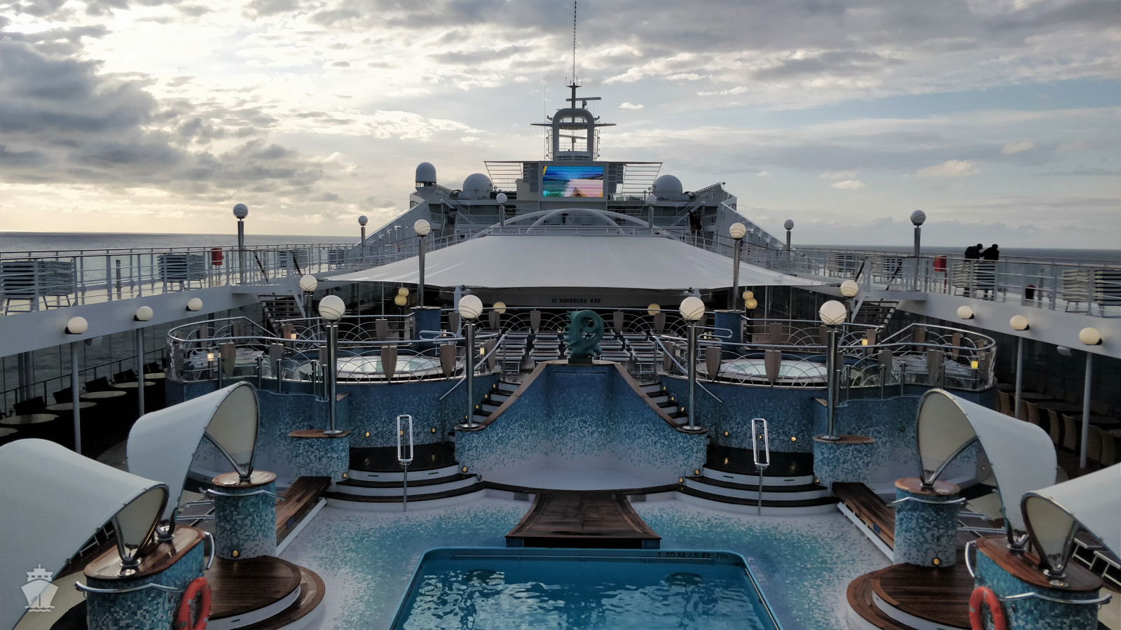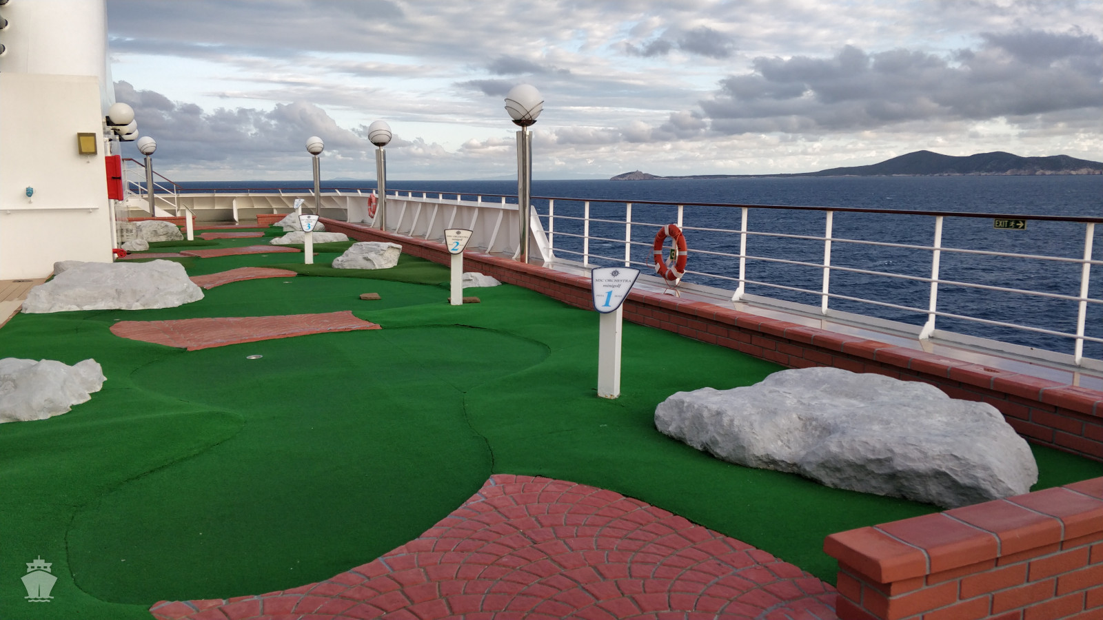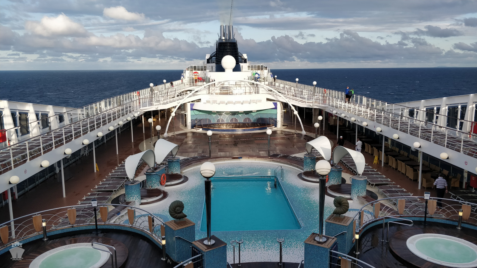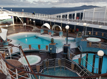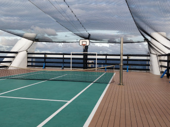 - sportovní aktivity na otevřených palubách (jogging, basketbal, fotbal, tenis), bazény a lehátka