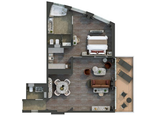 | O1 - Owner's 1 Suite 98 m² (vrátane balkóna 16 m²), spálňa, oddelená obývacia a jedálenská časť | 934 159 Kč 934 159 Kč za osobu |