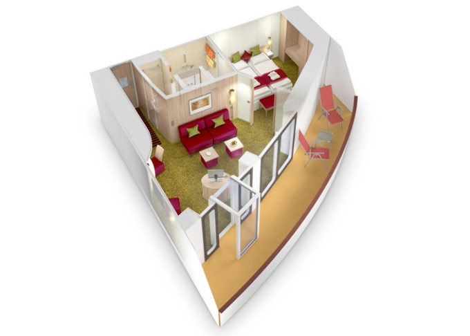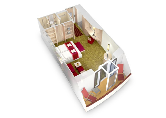 BB - Kajuta s balkonem PREMIUM od 17 m² / balkon od 3 m². Cenový model Premium. Max 4 osoby. 171 808 Kč 85 904 Kč za osobu