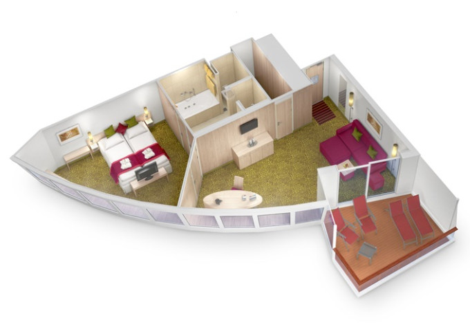 SA - Suite Deluxe PREMIUM od 56 m² / balkon od 12 m². Cenový model Premium. Max 5 osob. 349 868 Kč 174 934 Kč za osobu
