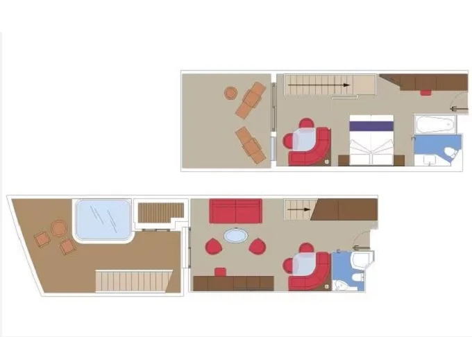 | YCD - Yacht Club Duplex Suite 46 m² + balkon 6 m². 2 podlaží, 2 koupelny (1 s vanou) Max 4 osoby. 16. paluba. Cenový model MSC Yacht Club. | 169 607 Kč 84 803 Kč za osobu | ||