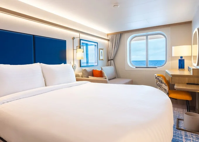 | L5 - Kajuta s oknem Panoramic Ocean View 24 m². Celoplošní neotevíratelné okno, výhled na moře. 14. paluba vpředu. Max 3 osoby. | 180 737 Kč 60 246 Kč za osobu | ||