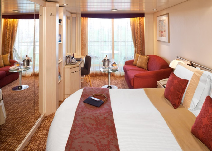 | CS - Celebrity Suite 44 m² + balkon 8 m² . Koupelna s vířivkou. 6. až 9. paluba. Max 3 osoby.Výhody Suite. | 507 621 Kč 169 207 Kč za osobu | ||