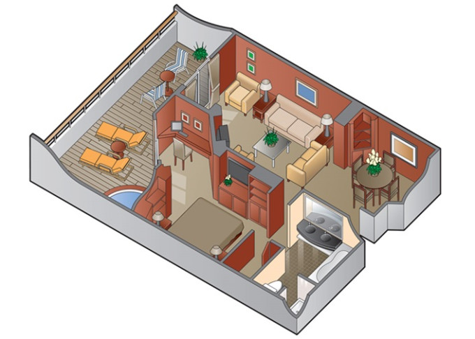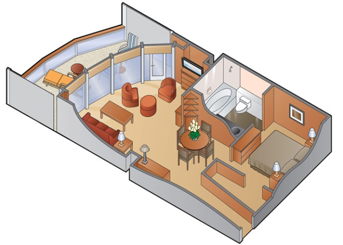 | RS - Royal Suite 51 m² + balkon s vířivkou 18 m² . Koupelna s vířivkou. 6. paluba. Max 3 osoby. Výhody Suite. | 454 478 Kč 454 478 Kč za osobu | ||