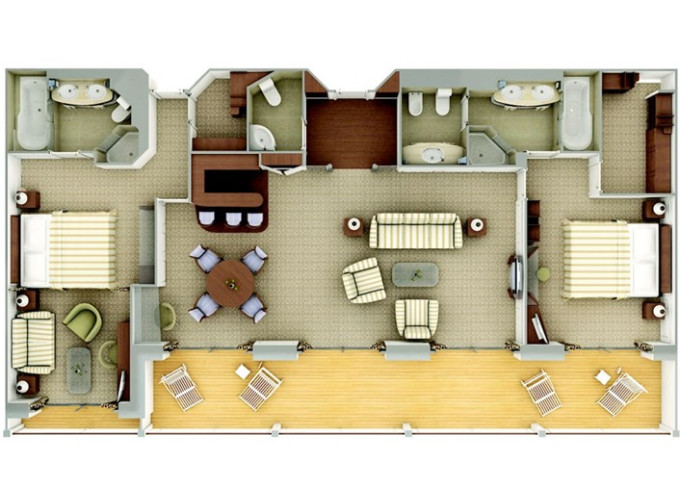| SL - Silver Suite 61-65 m² (včetně verandy). Ložnice, oddělená obývací časť a jídelní část, vírívka. | 1 965 660 Kč 655 220 Kč za osobu |