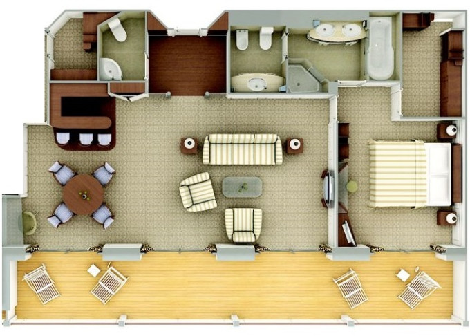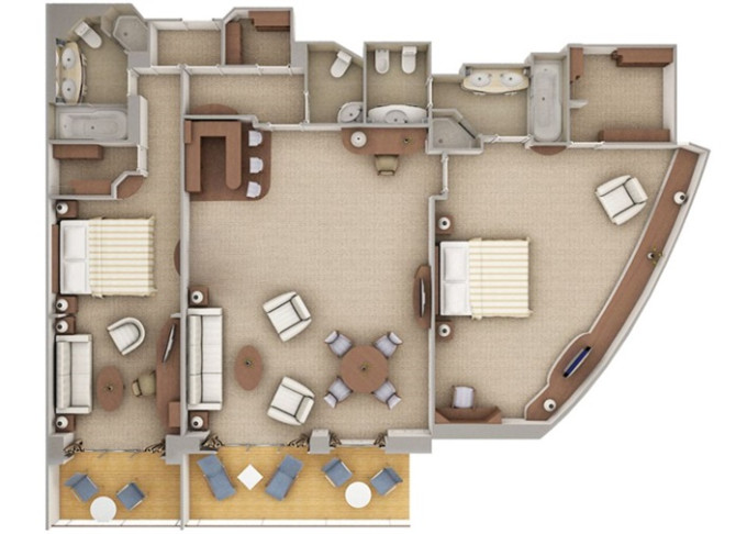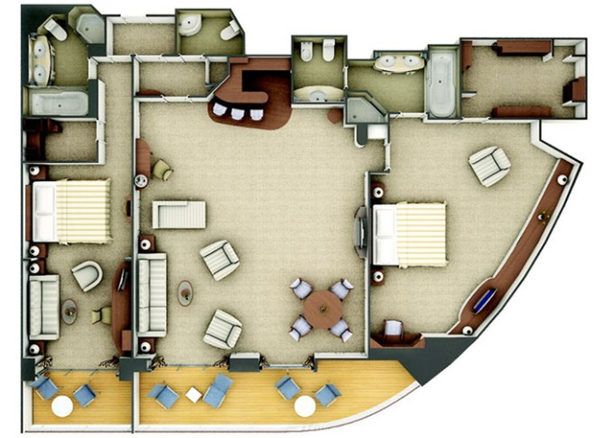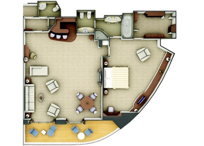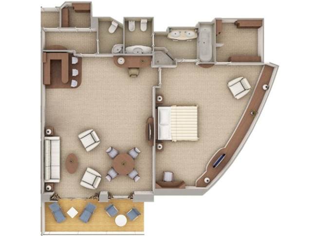 | O1 - Owner's Suite 1 85 m² (včetně balkonu). Ložnice, oddělená obývací část a jídelní část, vírívka. | 1 720 578 Kč 860 289 Kč za osobu |