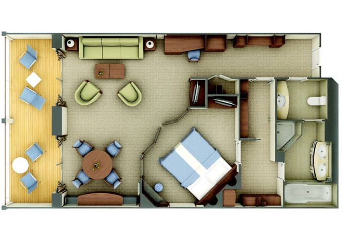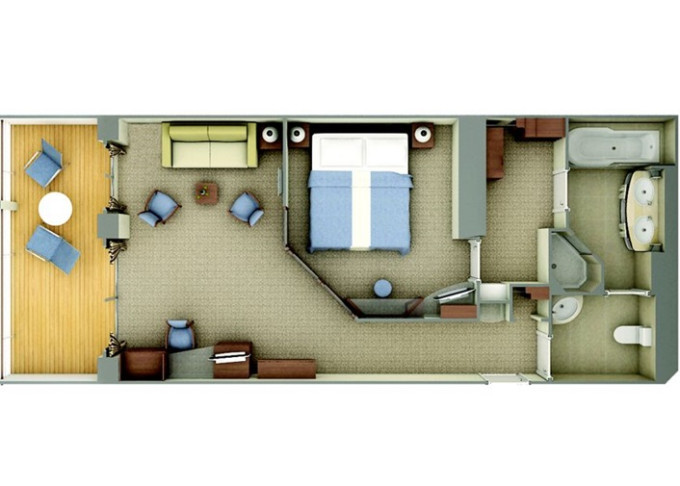 | SV - Superior Veranda Suite 32 m² (včetně balkona). Horní paluby. Ložnice s obývací částí. | 660 222 Kč 330 111 Kč za osobu | ||