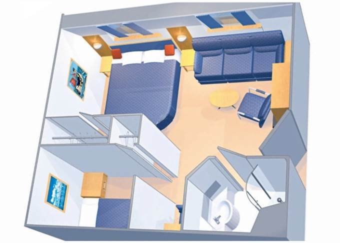 | VP - Ocean View Panoramic Suite (bez balkonu) 37 m². Panoramatické neotevíratelné okna. Výhody Royal Suite Class. 12. paluba. Max 6 osob. | 119 118 Kč 59 559 Kč za osobu | ||