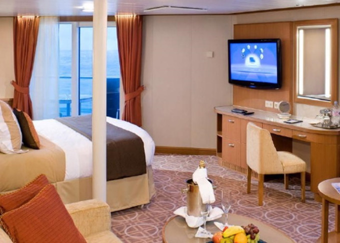 Základní vybavení všech kajut: koupelna s WC, fén, toaletní potřeby; lůžka, dostatek úložných prostor, toaletka se zrcadlem, individuálně nastavitelná klimatizace, TV, župany, trezor, minibar.