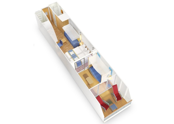 | VA - Kajuta s verandou Komfort PREMIUM od 24 m² / balkon od 6 m². Cenový model Premium. Max 4 osoby. | 90 280 Kč 45 140 Kč za osobu |
