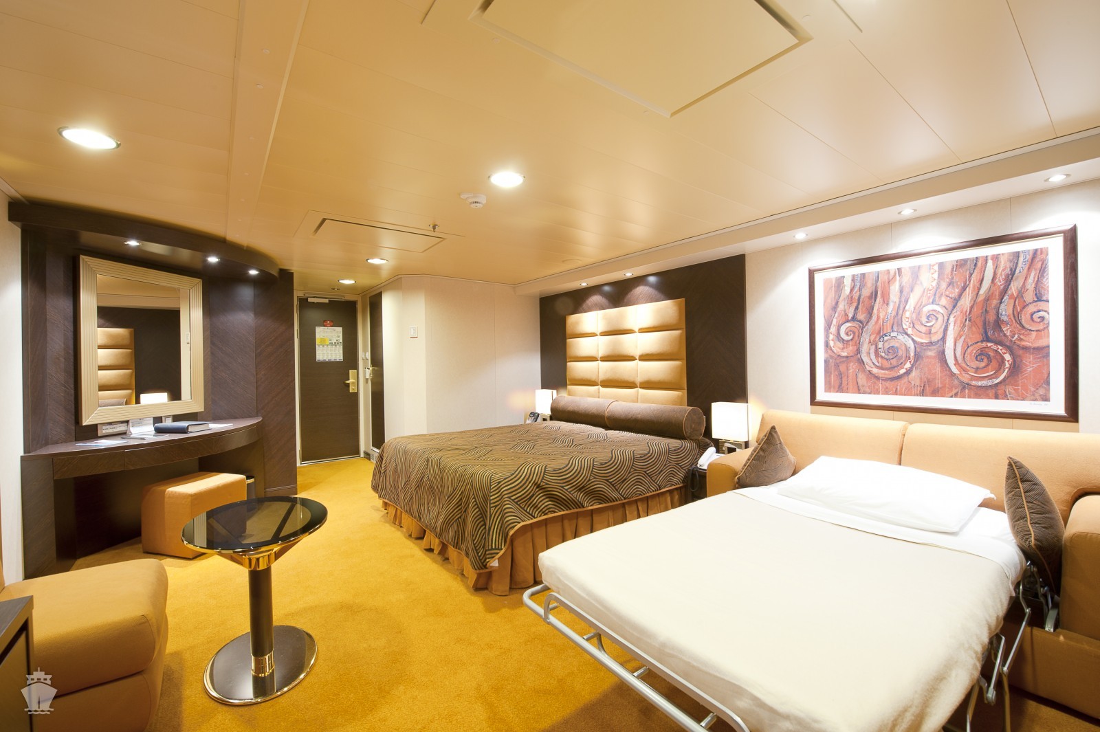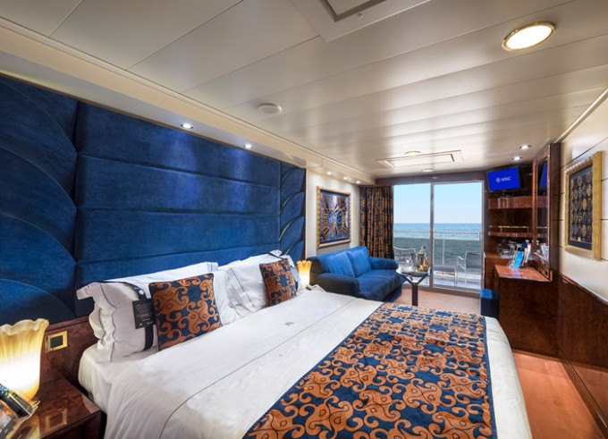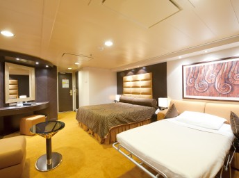 - ubytování v plně vybavené kajutě: vlastní koupelna se sprchou a WC, interaktivní TV, telefon, trezor, vysoušeč vlasů, regulovatelná klimatizace, minibar (za poplatek), Wi-fi (za poplatek)