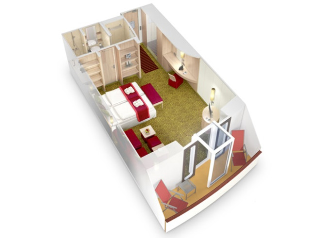 BA - Kajuta s balkonem PREMIUM od 17,5 m² / balkon od 3 m². Cenový model Premium. Max 4 osoby. 132 294 Kč 66 147 Kč za osobu