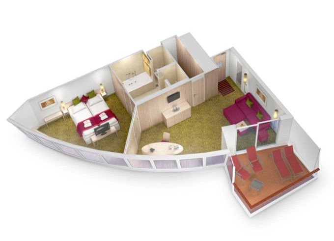 SA - Suite Deluxe PREMIUM od 56 m² / balkon od 12 m². Cenový model Premium. Max 5 osob. 265 839 Kč 132 920 Kč za osobu