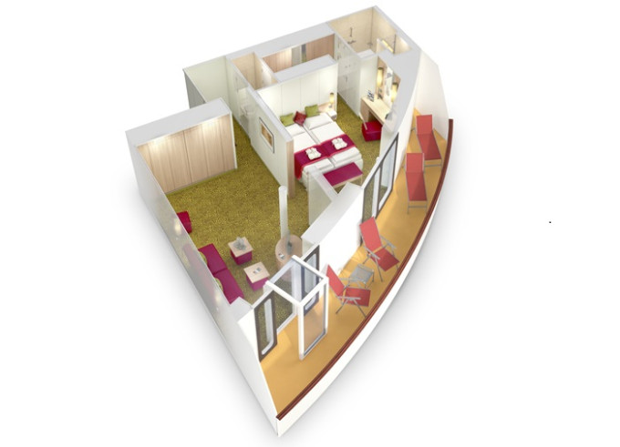 BP - Kajuta s balkonem Panorama PREMIUM 21,5 m² / balkon 4,5 m². Cenový model Premium. Max 3 osoby. 141 297 Kč 70 649 Kč za osobu