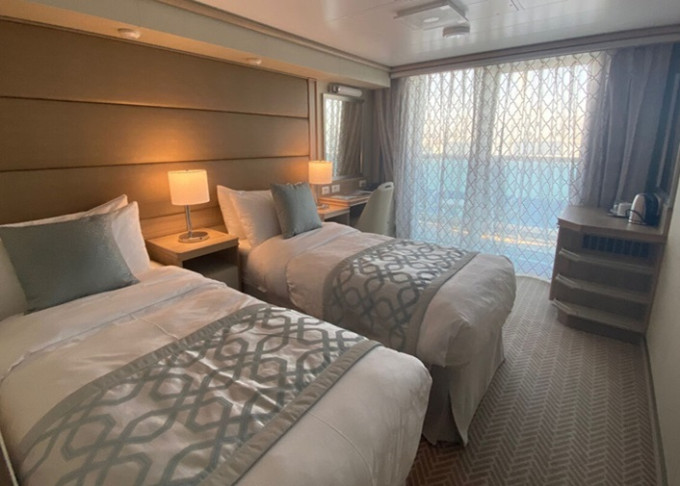 Standardní vybavení kajut: koupelna se sprchou a toaletou, 2 lůžka s možností konfigurace, úložné prostory, minibar, fén, TV, trezor. Balkony je vybaven malým stolkem a 2 židlemi či lehátky.