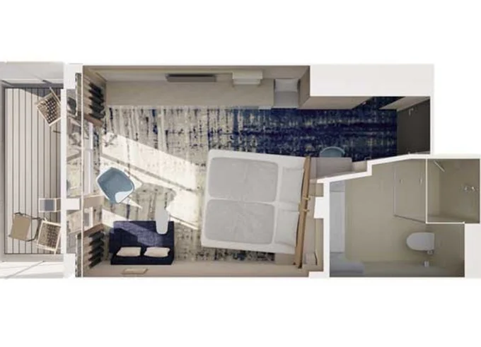 BKUR - Kajuta s balkonem PUR 17 m² + balkon 5 m². Max 4 osoby. Cenový model PUR. 87 429 Kč 21 857 Kč za osobu