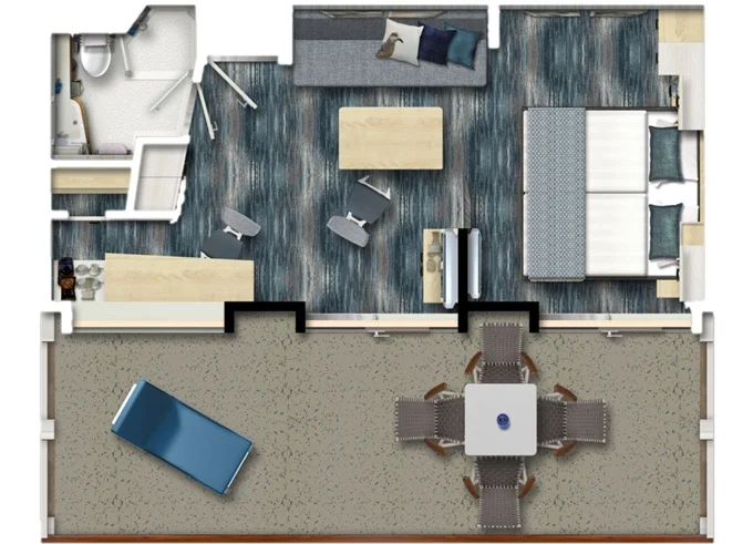 | SUHO - Himmel & Meer Suite 42 m² + prekrytá terasa 29 m² v patře se stolem, lehátky a s houpací sítí. Ložnice s obývací částí a jedálenským kútom. 14. paluba. Max 4 osoby. Výhody Suite. | 287 547 Kč 287 547 Kč za osobu | ||