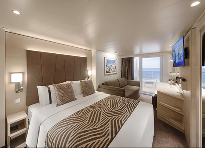 | PV - Kajuta s balkonem Deluxe Promenade & Ocean Fantastica 16 m² + balkon 5 m² (výhled na promenádu a na moře). 9. až 15. paluba na zádi. Cenový model Fantastica. Easy package v ceně | 109 987 Kč 109 987 Kč za osobu | ||