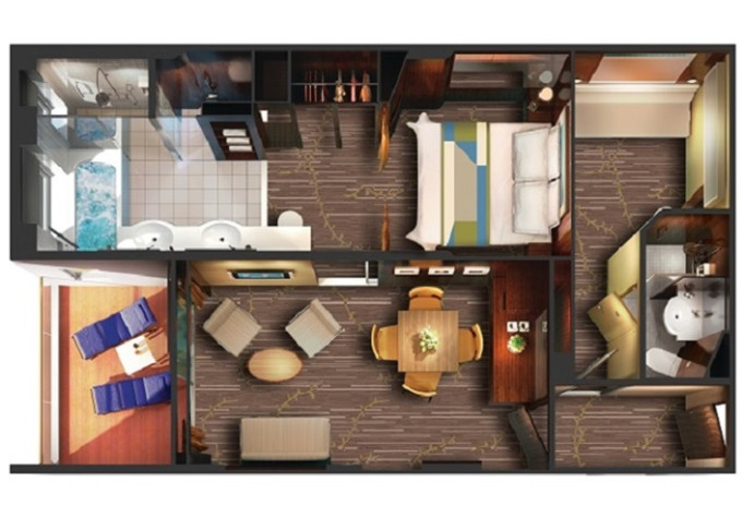 Suite: nejluxusnější a nejprostornější kajuty na lodi.