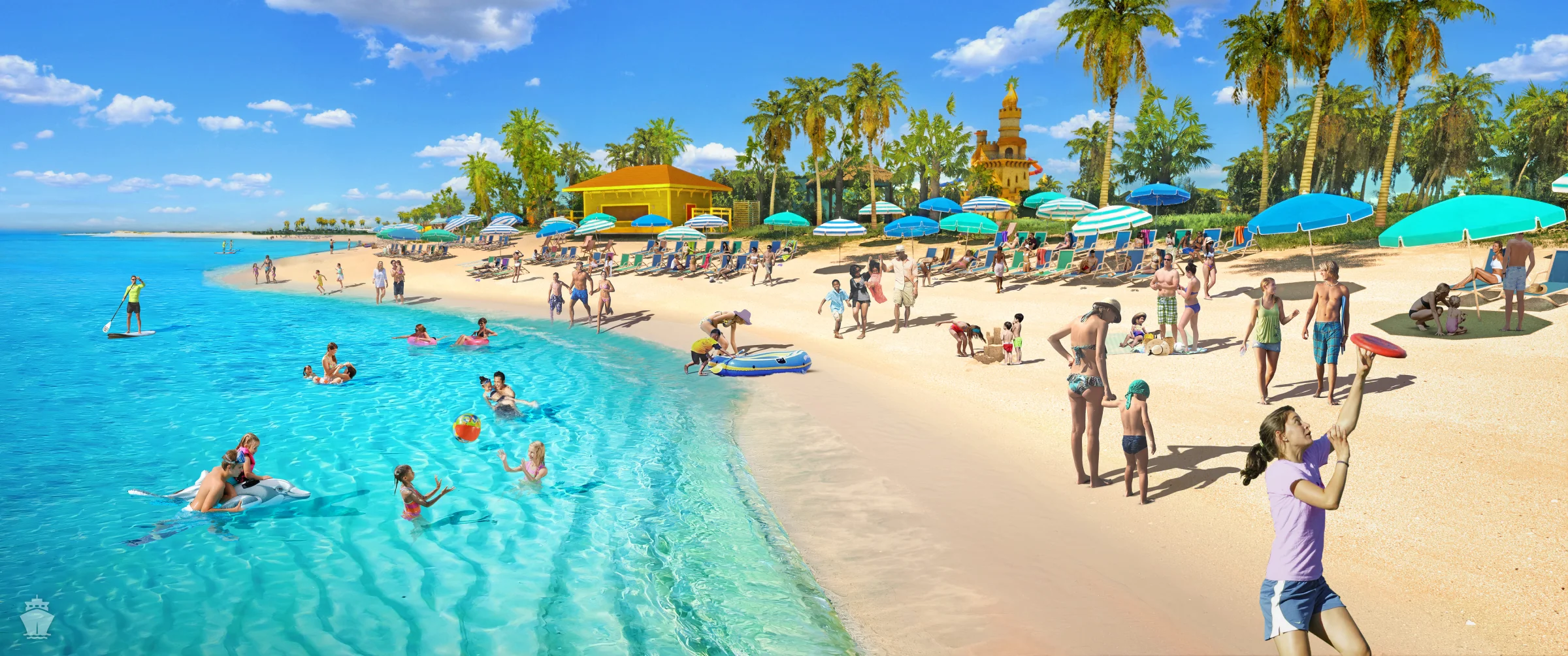 Po zakotvení lodi se rozšíří dovolenkové možnosti o jedinečnou zábavu, relaxaci a dobrodružství v ostrovním stylu. Resort je rozdělený na tematické části s odlišným typem zábavy: