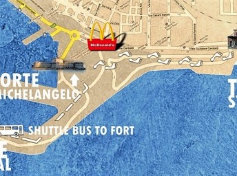 Přístav je od města Civitavecchia vzdálený cca 1,2 km. Ti, kteří se rozhodnou zůstat v přístavním městě, mohou se k centru Civitavecchia dostat pěšky, případně mohou využít i bezplatný kyvadlový autobus, který je zaveze k výjezdu z přístavu.