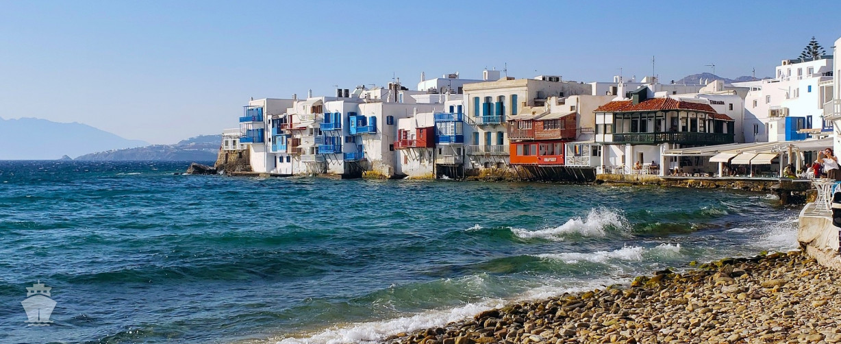 Lodě kotví buď na širém moři a transfer na ostrov je pomocí záchranných člunů (zdarma) nebo u kotviště Tourios v blízkosti města Mykonos, které je dostupné pěšky za cca 20 minut. Dopravit se dá i shuttle busem přímo od lodi na okraj centra nebo místní kyvadlovou lodní přepravou přímo na centrální přímořskou promenádu.